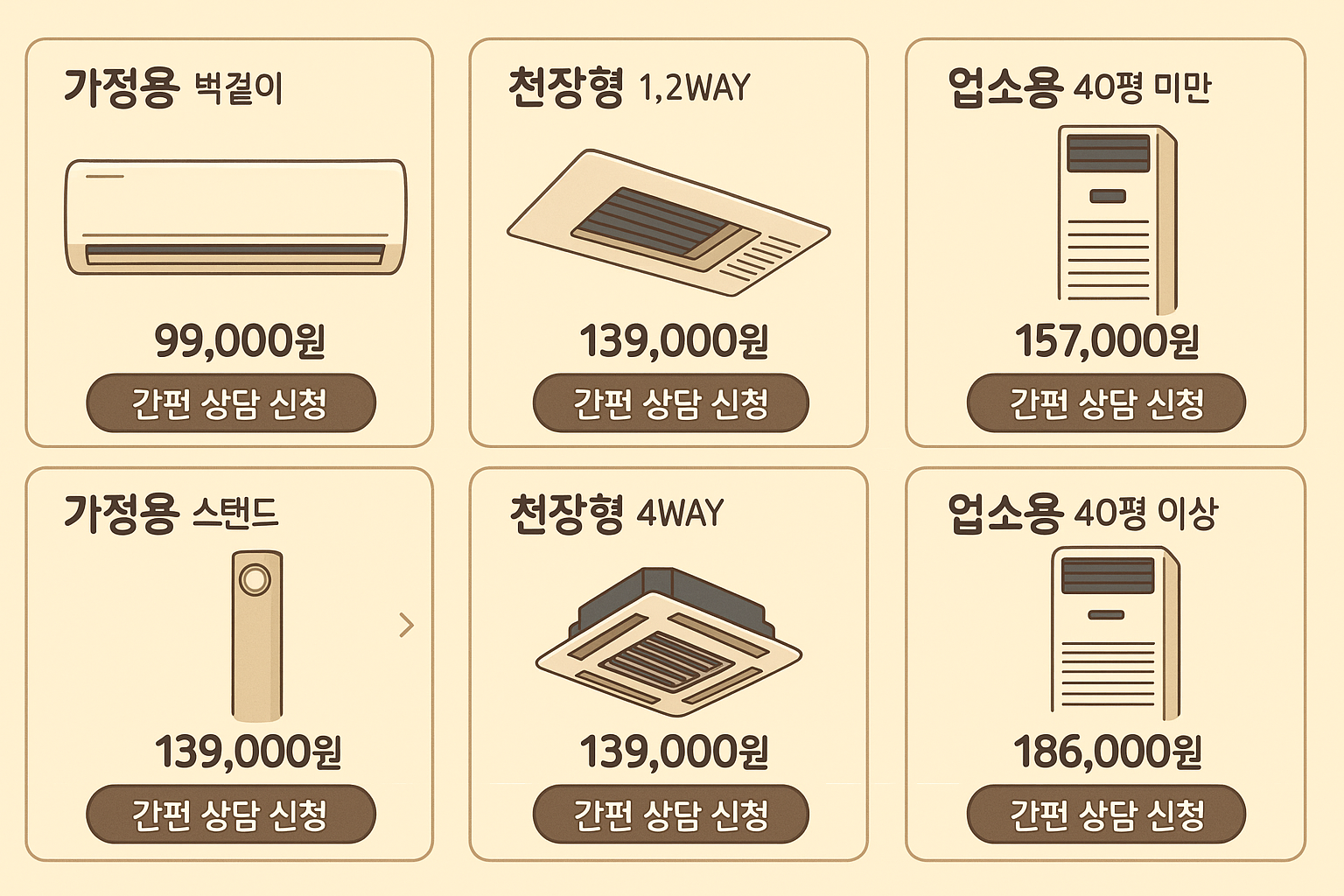 이 표를 참고하면, 벽걸이 에어컨 청소 비용이 다른 종류에 비해 상대적으로 저렴하다는 것을 알 수 있어요.